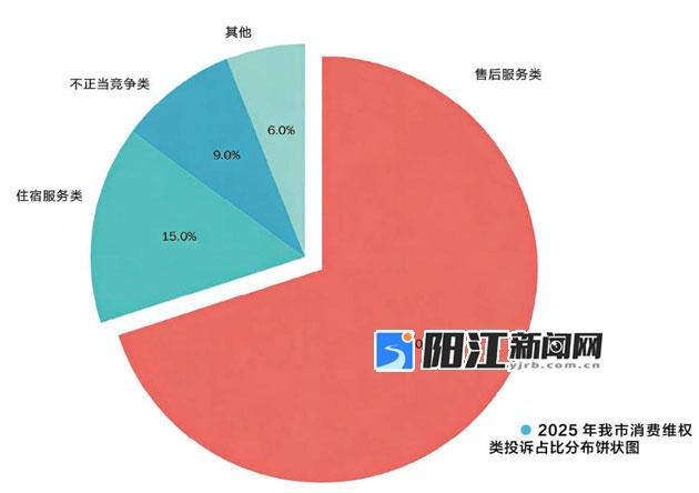 3月15日是第44个国际消费者权益日。连日来,记者通过走访市场监管和市中级人民法院等部门,梳理典型案例,了解我市消费维权现状,发现售后退费、住宿服务、虚假宣传成消费维权“高发区”。数据显示,2025年,市有关部门共受理消费维权类诉求28921宗,其中位列前三的投诉类型分别是售后服务类投诉20370宗,占比高达70%,住宿服务类投诉4285宗(占比15%),不正当竞争类投诉2580宗(占比9%),其他类的占比6%。