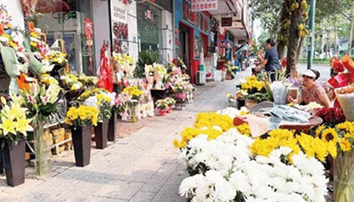 花店推出各式鲜花花束、花篮方便市民购买用于清明祭祖。梁文栋摄