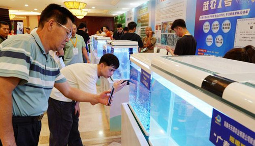 参会人员在鳜鱼种业全产业链展示区参观。宋福亮 摄
