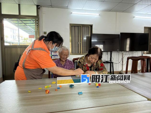 “90后”护理员柳兰芳在教老人玩积木游戏。