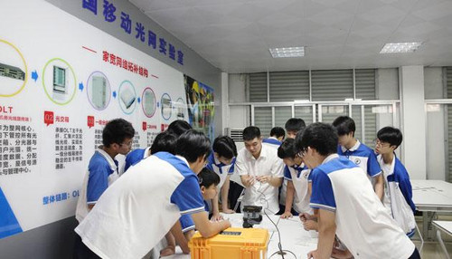 记者了解到,“中国移动光网实验室”建设坚持“教学与岗位同频、实训与实战同步”,阳江移动将参与人才培养全流程,联合企业工程师与学校教师共同开发《计算机网络基础》《宽带故障诊断与处理》等6门理实一体化核心课程,引入真实工单系统,实现“课堂即工位”。项目首批投入超10万元实训设备,配备华为FTTR实训套件、光纤熔接机等专业器材,布设1公里光缆搭建全真实操环境,全面提升学生动手能力。