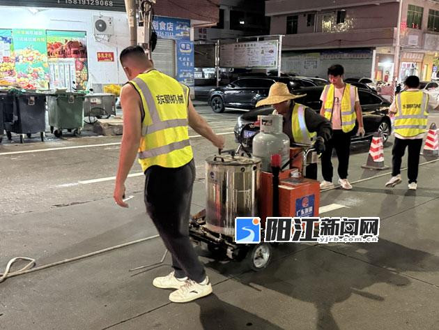 近段时间,阳东区各大市场周边道路及湖滨路、新江台大道等路段,一批交通标志标线正在“换新”。这一次,所有的划线作业被安排在夜间进行,也就是在车流开始减小的晚上7时后,持续到凌晨三四时,工期约一周。