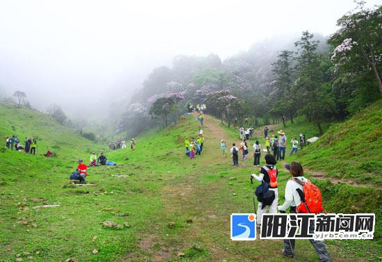 阳江日报讯(记者/杨辉南)2026杜鹃花海·阳江阳春鸡笼顶越野赛将于4月26日激情开跑。4月21日,记者登上鸡笼顶,看见漫山杜鹃花开,各地慕名而来的游客已经抢先探秘“最美赛道”,穿越花海,奔跑在高山草原。