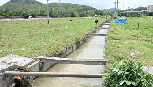 初夏时节,记者来到海陵试验区闸坡镇白圩社区东北侧,只见一泓清流从排水口缓缓流出,沿田间水渠流淌,绵延至远处的村庄与农田交界处。灿烂的阳光洒落下来,微风拂过,水面泛起粼粼波光。