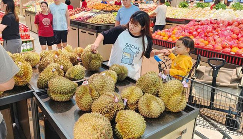 市民在超市选购榴莲。官文婷 摄