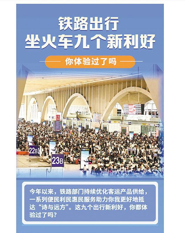 今年以来,铁路部门持续优化客运产品供给,一系列便民利民惠民服务助力你我更好地抵达“诗与远方”。这九个出行新利好,你都体验过了吗?
