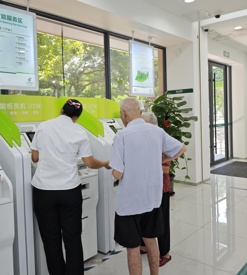 除了硬件升级,该网点更致力于深化服务内涵与人文关怀。从主动识别老年客户、询问需求并耐心引导、提供温水服务,到用通俗的语言解疑答惑、业务办结后提醒带齐物品、陪伴送别等,每一步都体现着对老年客户的暖心关怀。面对智能技术带来的“数字鸿沟”,网点工作人员总是主动上前,耐心协助老年客户操作智能机具,细致讲解业务办理流程。网点将“公众教育区”作为常态化宣教阵地,把握社保卡激活、养老金代发日等老年客户群体服务高峰期,在等候期间,及时派发通俗易懂的金融知识教育宣传单张,并配套开展“厅堂微沙龙”、案例讲解等互动形式,对老年客户针对性开展金融知识教育,增强其识别与防范诈骗的能力。
