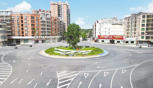 改造完成的春湾镇迎宾大道环岛。 袁荣泽 摄