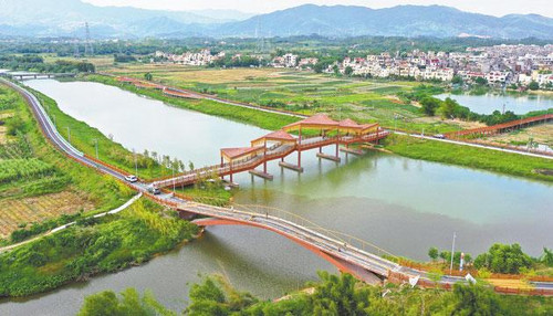 这是塘口镇三甲河旅游示范带建设项目吸引市民游客的真实写照。该项目自2023年4月动工建设以来,滨河公园、五亭桥、枕月桥、旅游厕所、公共停车场、滨水慢行道、滨水栈道等主要观光点和配套设施逐步完善。2024年底正式完工后,不仅为县城及周边群众提供了高品质日常休闲空间,在丰富群众生活、提升生活品质的同时,更有效激活了区域文旅潜力,为塘口镇社会经济发展注入新动能。