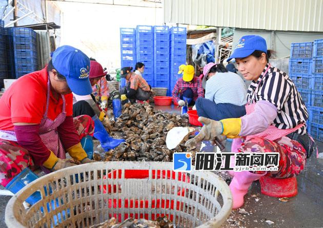 收获季节,工人们每天忙着开蚝供应市场。